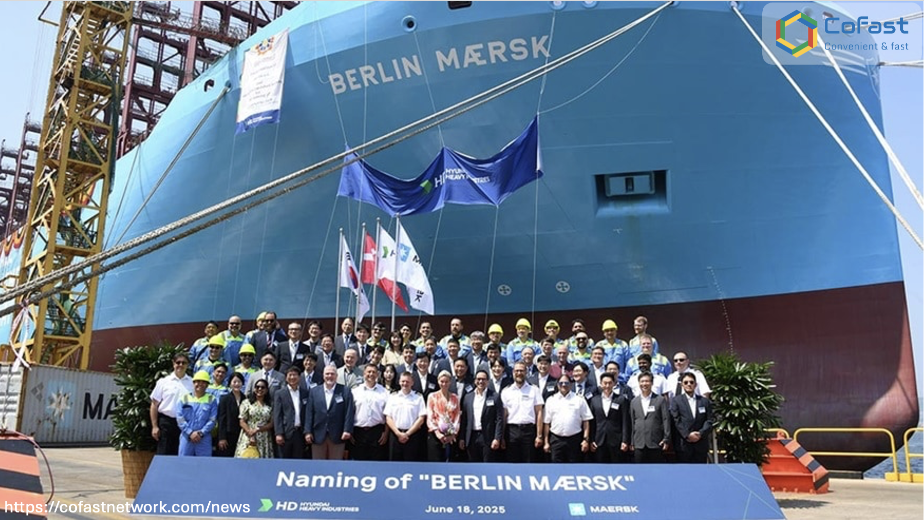Maersk làm lễ đặt tên cho tàu Berlin Maersk, tàu đầu tiên trong loạt tàu 17.480 TEU sử dụng nhiên liệu methanol, sẽ hoạt động trên tuyến châu Á – châu Âu.