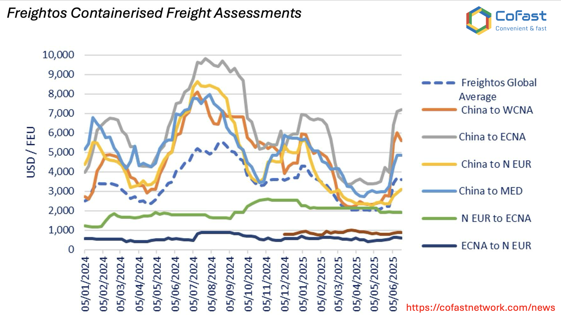 Tuy nhiên, đà tăng chủ yếu diễn ra trong nửa đầu tháng 6 và hiện đang chững lại, dấy lên câu hỏi: Liệu đây là điểm cân bằng mới hay chỉ là “cơn sốt ngắn hạn”? Nhiều doanh nghiệp Mỹ phàn nàn về việc thiếu tàu, lịch trình tàu không ổn định, quy định khí thải ngày càng nghiêm ngặt và tình trạng nghẽn cảng trung chuyển.