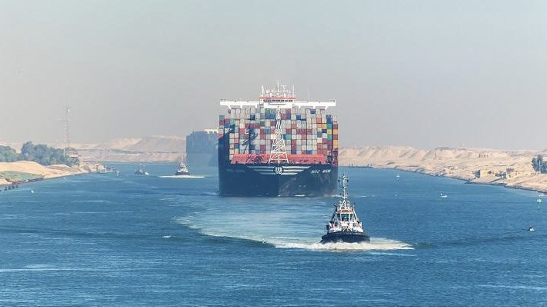 Tàu container di chuyển qua Kênh đào Suez – tuyến hàng hải trọng yếu nối liền Địa Trung Hải và Biển Đỏ.