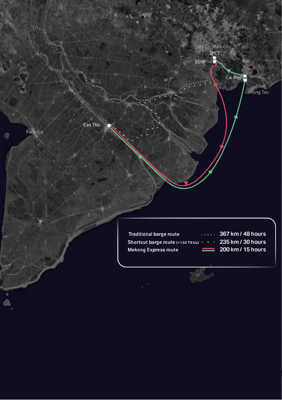 Mới đây, DP World hợp tác cùng hãng VIMC Container Lines công bố tuyến Mekong Express – dịch vụ kết hợp đường sông và đường biển. Bằng cách tận dụng lợi thế sông ngòi, Mekong Express hướng tới việc đưa container từ cảng Cái Mép lên sâu bên trong vùng ĐBSCL nhanh chóng và bền vững hơn. Dịch vụ này không chỉ giảm thiểu ách tắc giao thông trên đường bộ mà còn cắt giảm thời gian và chi phí vận chuyển, mang lại độ tin cậy cao cho chủ hàng.