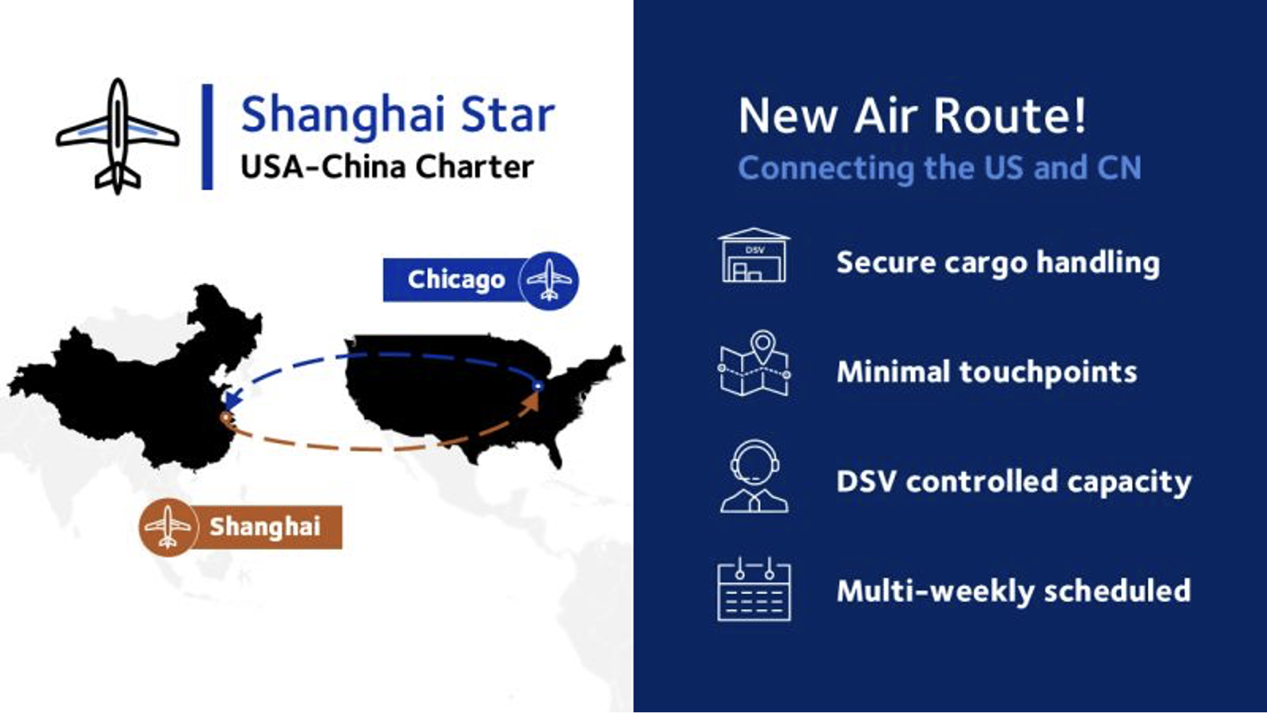 Ra mắt từ tháng 5, “Shanghai Star” ban đầu phục vụ tuyến xuyên Thái Bình Dương giữa Thượng Hải (Trung Quốc), Incheon (Hàn Quốc) và Chicago Rockford (Mỹ), nhằm đáp ứng nhu cầu vận chuyển hàng hóa giá trị cao của các ngành công nghiệp vùng Trung Tây Hoa Kỳ. Nay, với sự hợp tác chiến lược cùng sân bay quốc tế Rockford (RFD), DSV đã nâng cấp tuyến này trở thành cầu nối thương mại mới giữa châu Á và Mỹ Latinh.