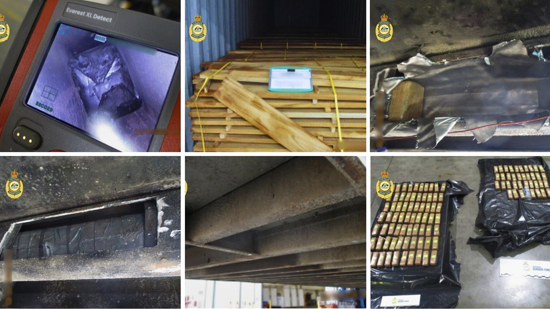 Trong quá trình kiểm tra chi tiết, lực lượng chức năng tìm thấy 108 bánh chất bột màu trắng, bọc trong nylon đen và giấu trong dầm thép dưới sàn container. Kiểm tra ban đầu xác định đây là cocaine. ABF sau đó bàn giao vụ việc cho AFP tiếp tục xử lý.