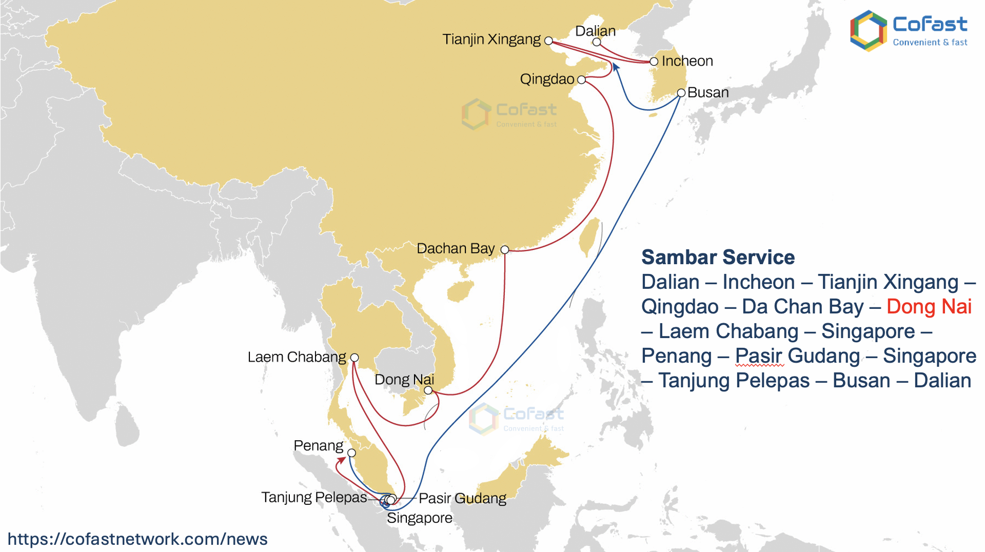 Lịch trình bao phủ loạt cảng quan trọng: Dalian – Incheon – Tianjin Xingang – Qingdao – Da Chan Bay – Phước An (Đồng Nai) – Laem Chabang – Singapore – Penang – Pasir Gudang – Singapore – Tanjung Pelepas – Busan – Dalian.