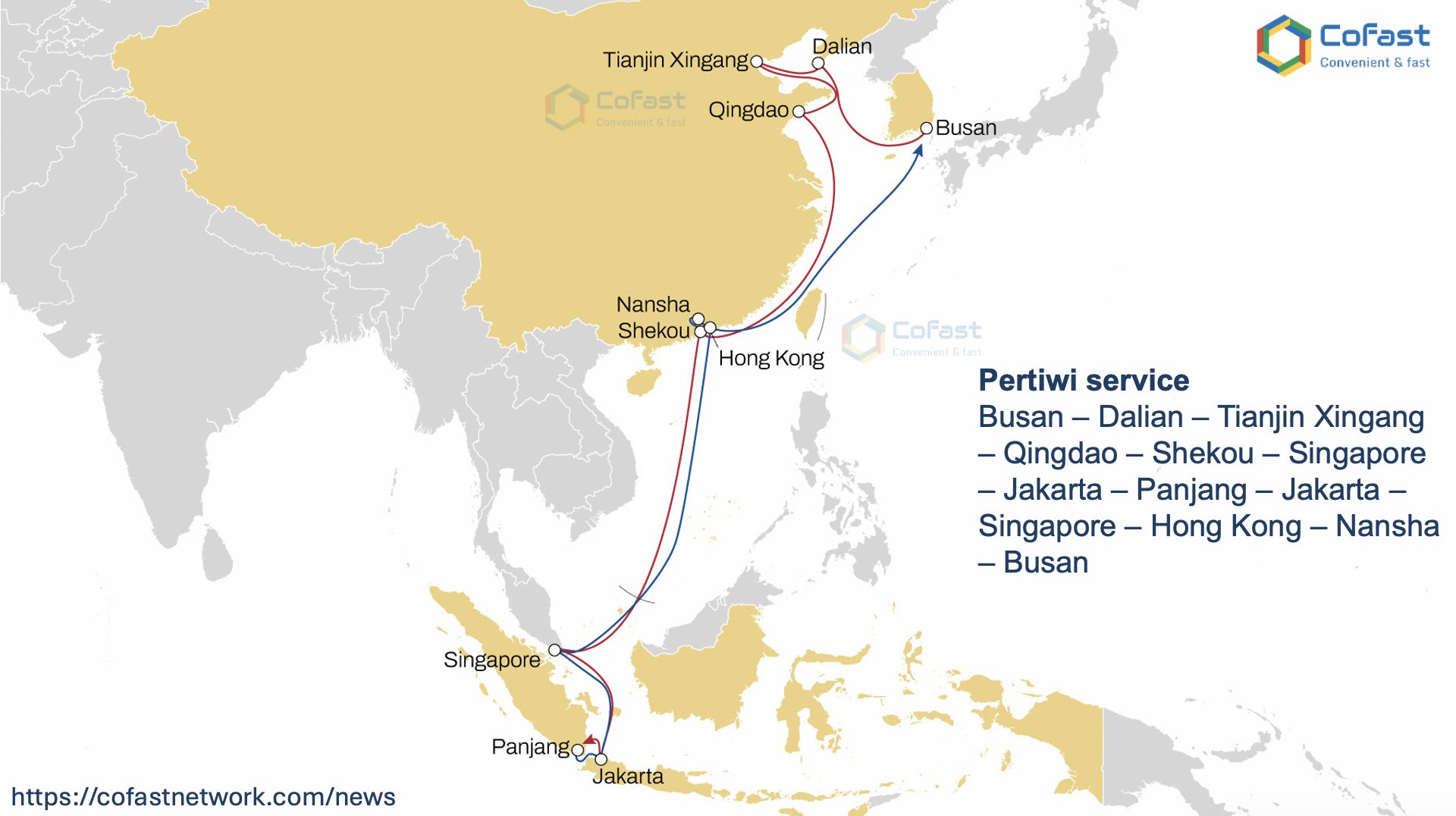 Pertiwi sẽ bắt đầu cải tiến từ 29/10/2025 với tàu Athena, kết nối Trung Quốc – Indonesia qua Busan, Shekou, Singapore và Jakarta.