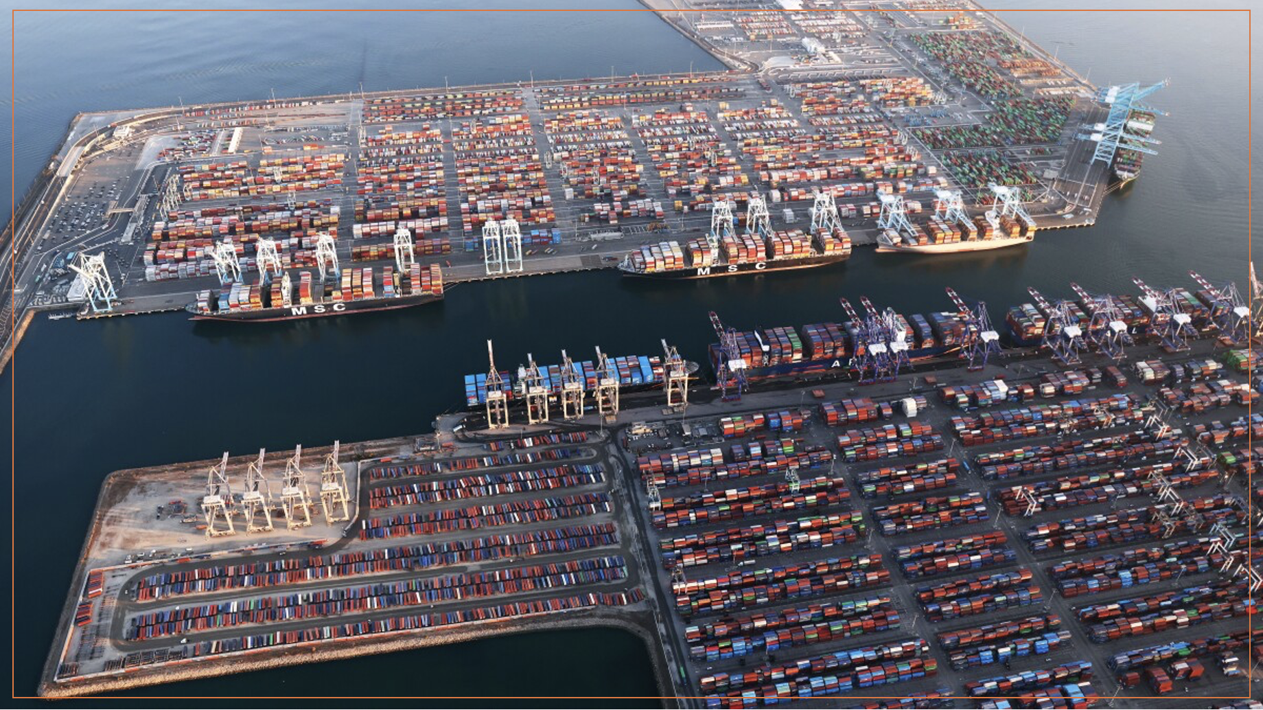 Toàn cảnh cảng Los Angeles và Long Beach – cụm cảng container nhộn nhịp nhất nước Mỹ, hiện hoạt động 24/7 để đáp ứng nhu cầu thương mại kỷ lục.