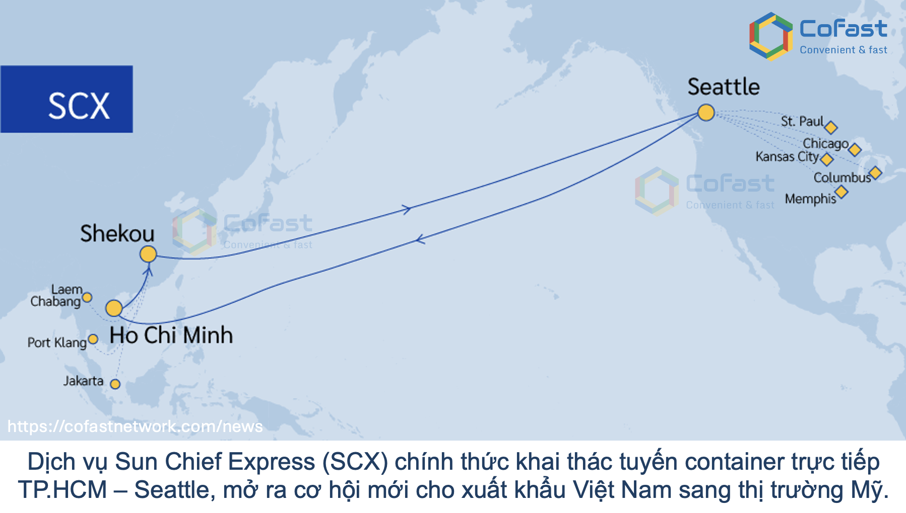 📍 Lịch trình tuyến SCX: Hồ Chí Minh – Shekou – Seattle – Hồ Chí Minh